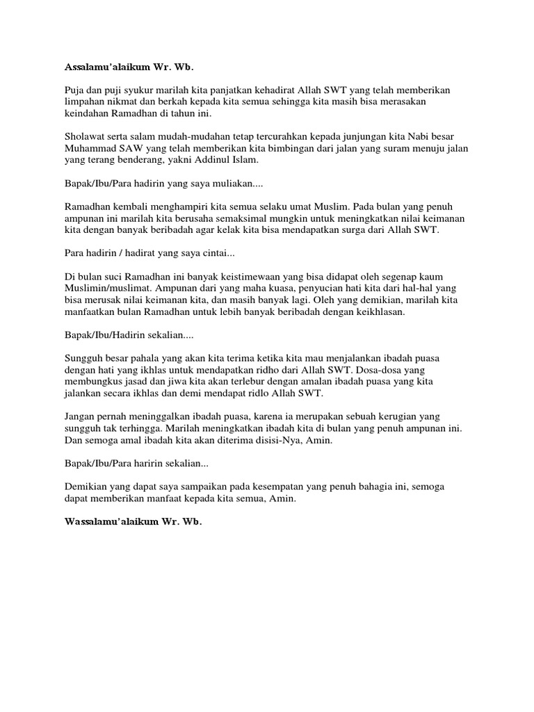 Contoh Teks Pidato Menyambut Bulan Suci Ramadhan Pdf