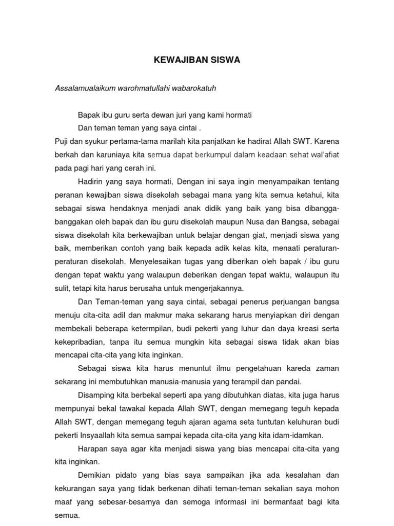 Pidato Tentang Tugas Dan Kewajiban Siswa Ilmupena Com