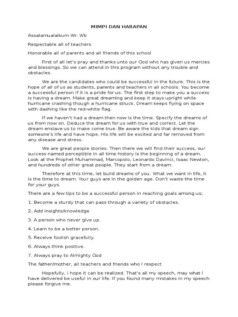 Pidato Bahasa Inggris Mimpi Dan Harapan Pdf