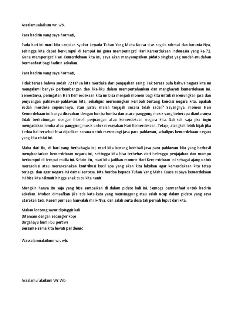 Contoh Pidato Kemerdekaan Ri Singkat