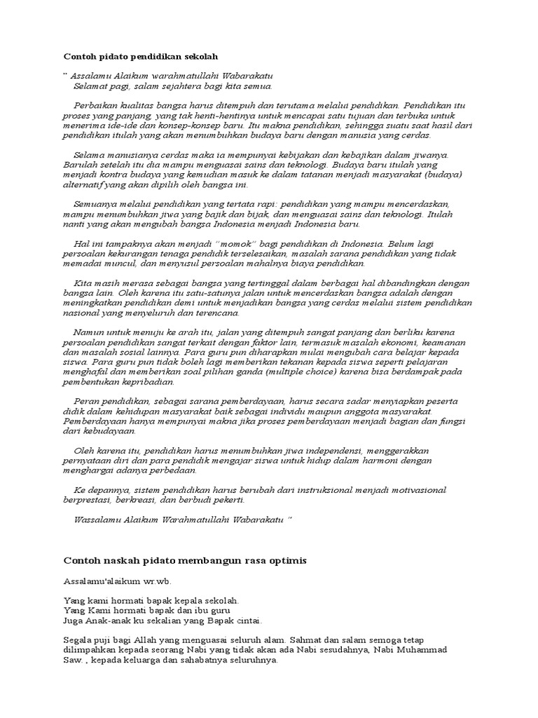 Contoh Pidato Pendidikan Sekolah Pdf
