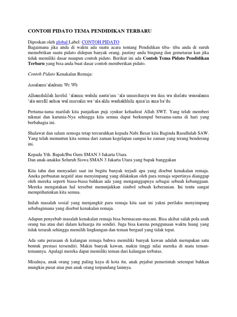 Contoh Pidato Tema Pendidikan Terbaru Pdf