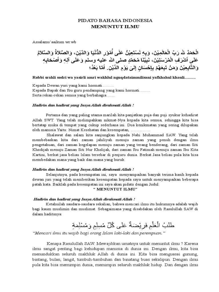 Berpidato dengan cara yang efektif dapat digunakan. Seperti apa pidato bahasa inggris ya. Menuntut ilmu itu wajib atas setiap muslim.