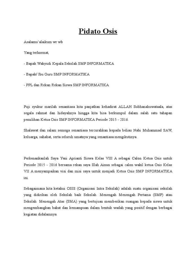 Naskah Pidato Calon Ketua Osis Smp Kumpulan Pidato Jago Berpidato Apa Yang Kamu Cari Ada Disini