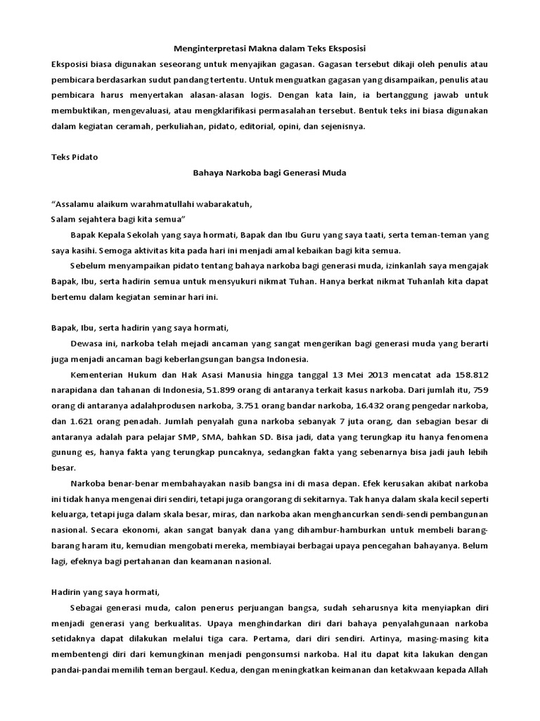 Contoh Pidato Singkat Bahasa Indonesia - kumpulan naskah contoh teks pidato singkat tentang pendidikan perpisahan di sekolah dan kampus pidato narkoba pergaulan bebas agama serta contoh pidato dalam bahasa Inggris untuk anak SD dan TK. Contoh Teks Persuasi Pendidikan Istilah persuasi ditafsirkan sebagai undangan kepada seseorang dengan memberikan alasan. 2 contoh teks eksposisi tentang budaya terbaru admin december 23 2016 in bahasa indonesia comments off 2 contoh teks eksposisi tentang budaya teks eksposisi merupakan sebuah teks wacana yang memuat sejumlah pengetahuan dan informasi tentang suatu hal yang disampaikan dengan ketepatan akurasi secara singkat pada dan jelas.