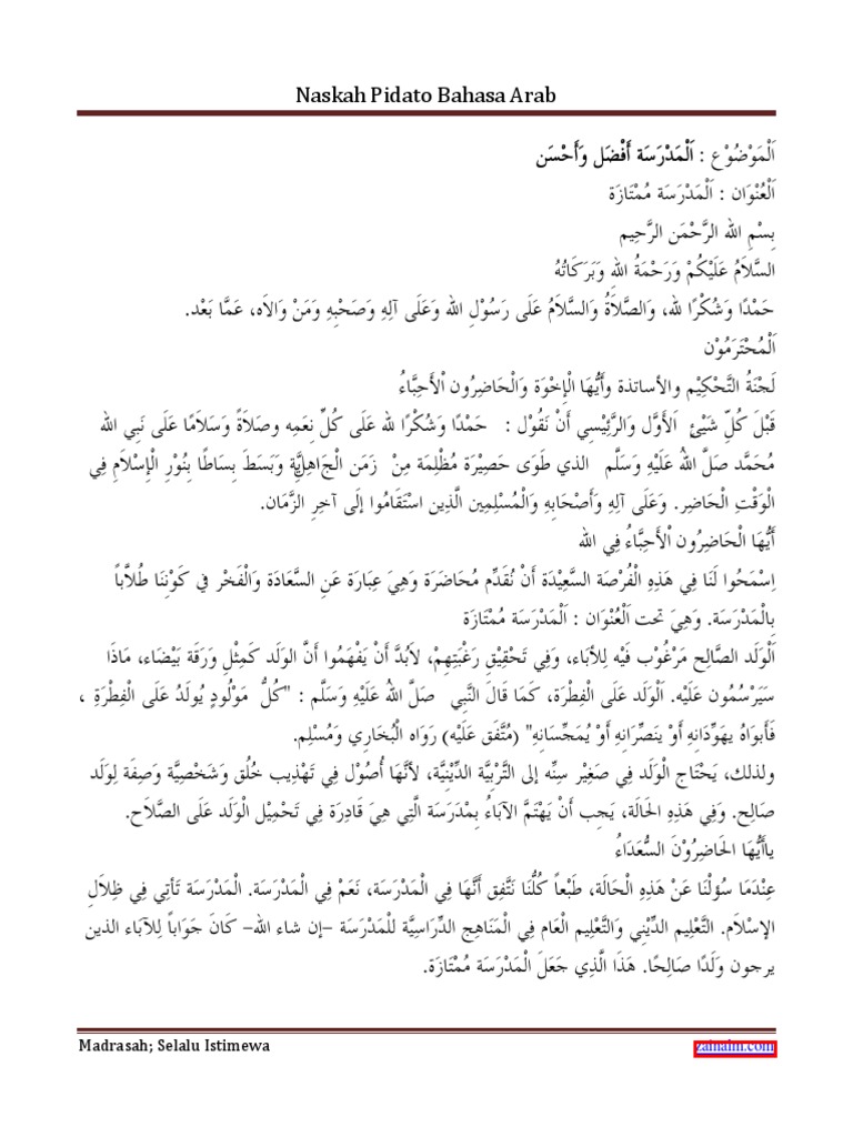 Teks Pidato Bahasa Arab Singkat Padat JelasTerbaik Dan Mudah