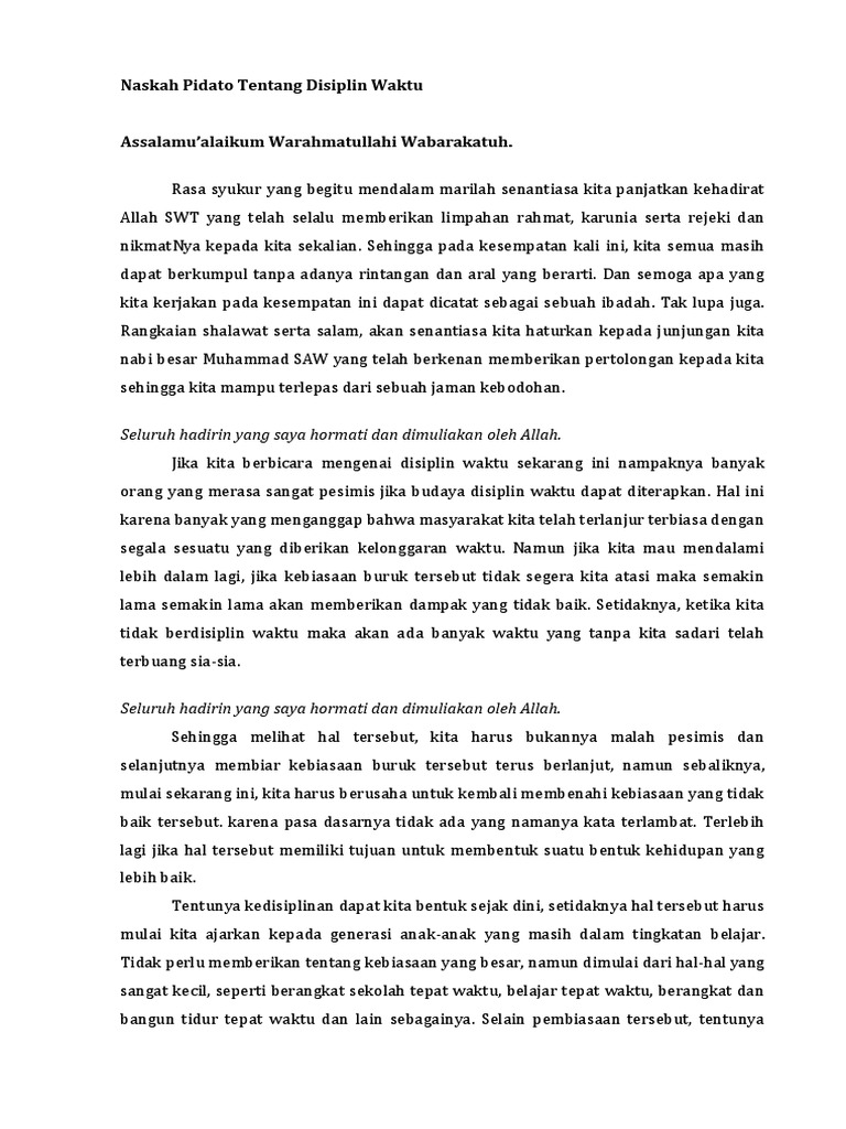 Naskah Pidato Tentang Disiplin Waktu Pdf