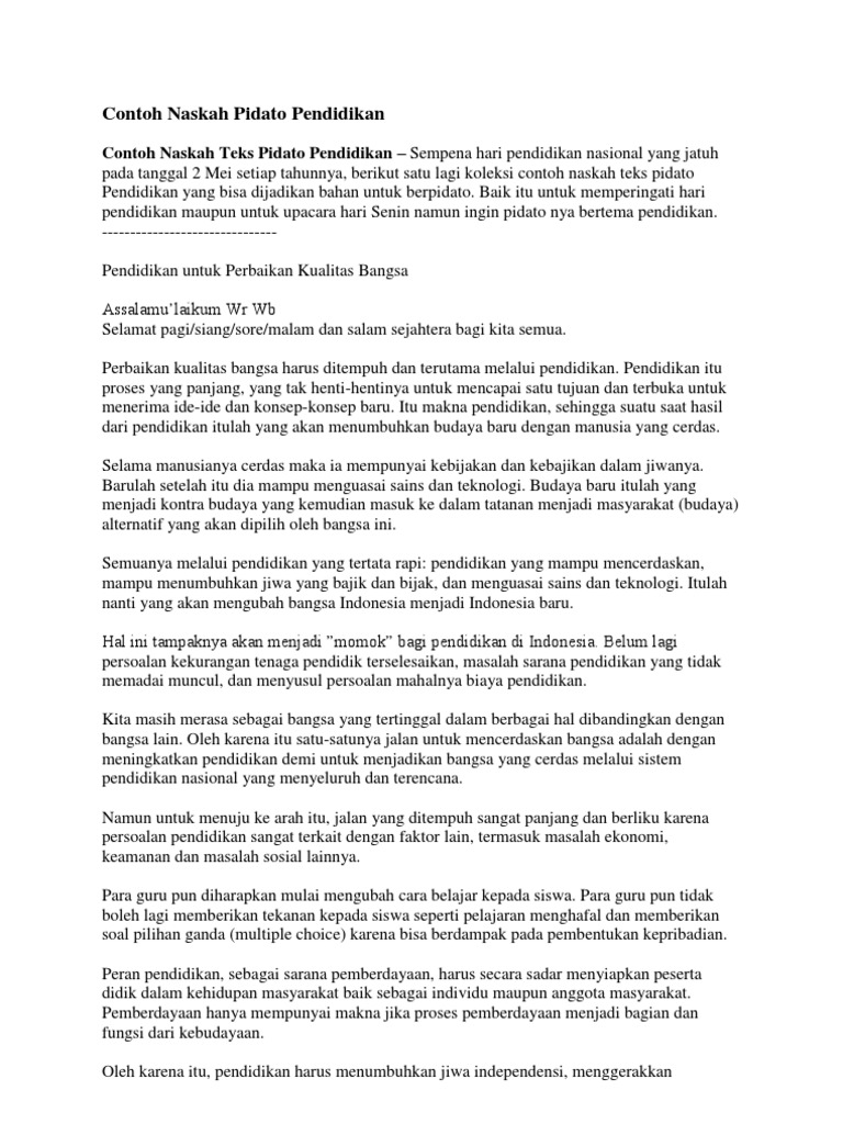 Contoh Naskah Pidato Pendidikan Yang Baik Dan Benar Blog Bikincv
