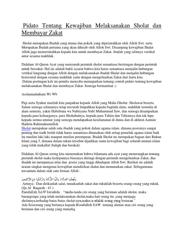 Teks pidato singkat tentang zakat terbaru. Teks pidato zakat assalamualaikum wr wb alhamdulillahirobbil alamin wabihi nastain ala umuriddunya waddin ashsholatu wassalamuala asrofil ambiyaa iwal mursalin waala alihi washohbihi ajmain. Pada kesempatan yang baik ini marilah kita panjatkan puji syukur kehadirat Allah SWT yang mana telah memberikan nikmat dan hidayahnya kepada kita sehingga bisa berkumpul dalam keadaan sehat pada hari ini. Contoh Pidato Menerapkan Sopan Santun Sejak Dini.