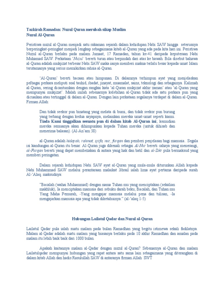 Tazkirah Ramadan Nuzul Quran Pdf