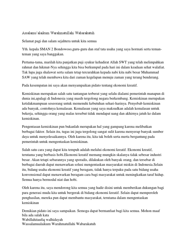 Teks pidato ekonomi syariahTerbaik dan Mudah. Misalnya jika pidato ketika acara peringatan hari kartini maka isi dari pidato yang disampaikan adalah tentang hal yang berkaitan dengan hari kartini. Ikutilah struktur pembuatan teks pidato teman-teman akan dengan mudah menyusun teks pidato. Penulis menerapkan metode talking stick pada pembelajaran materi teks pidato.