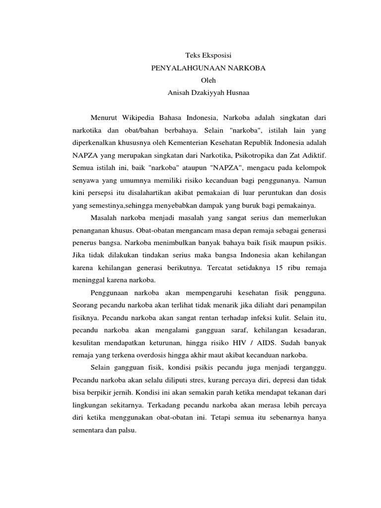 Contoh Teks Eksposisi Tentang Narkoba Terbaik Dan Mudah Dihafal