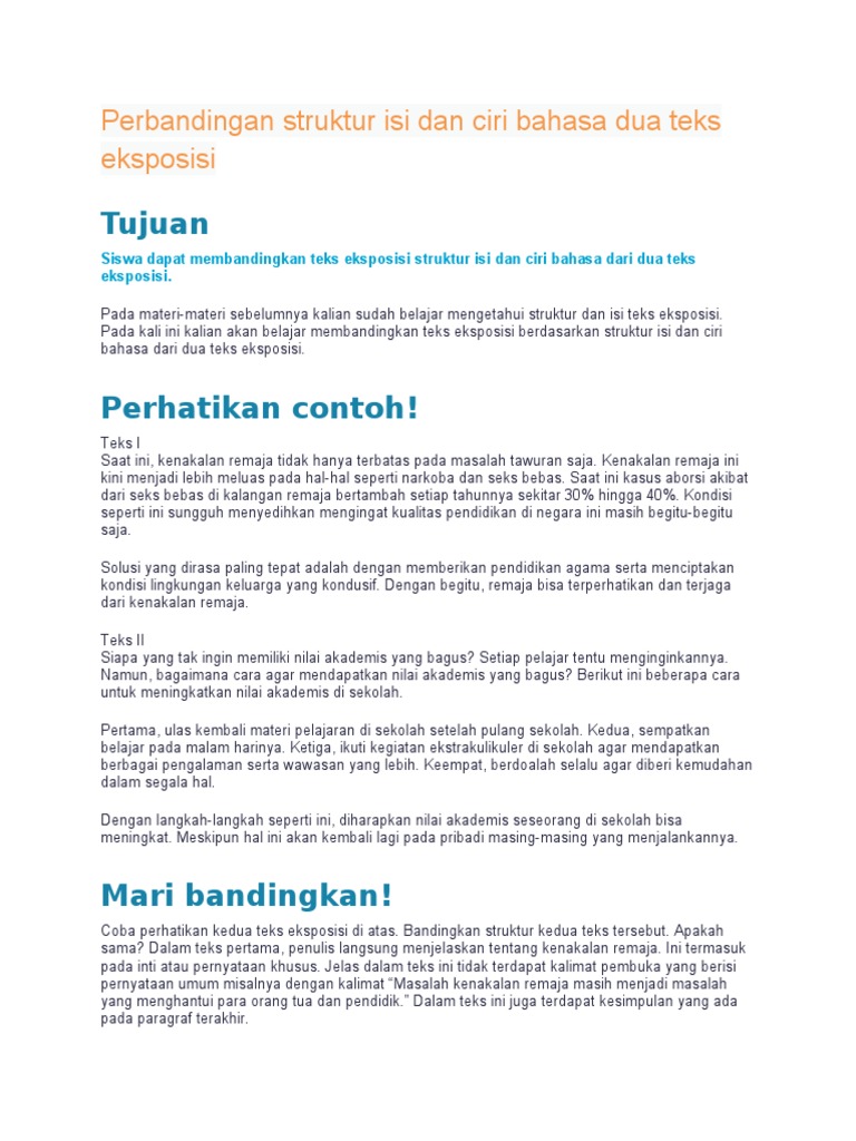 Perbandingan Struktur Isi Dan Ciri Bahasa Dua Teks Eksposisi Pdf