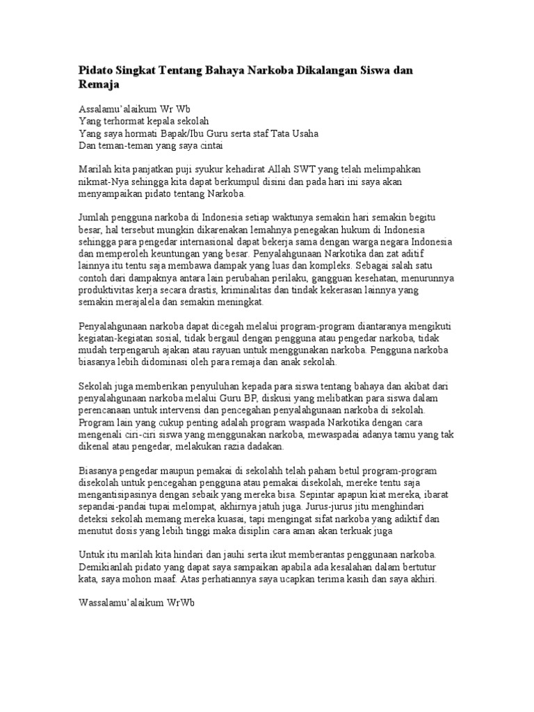 Pidato Singkat Tentang Bahaya Narkoba Dikalangan Siswa Dan Remaja Pdf