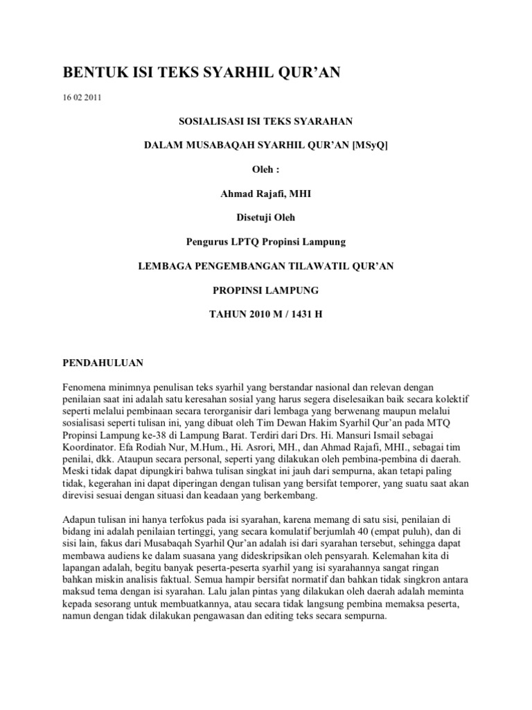 Download Teks Syarhil Quran Terbaru Teks Mtq Nasional