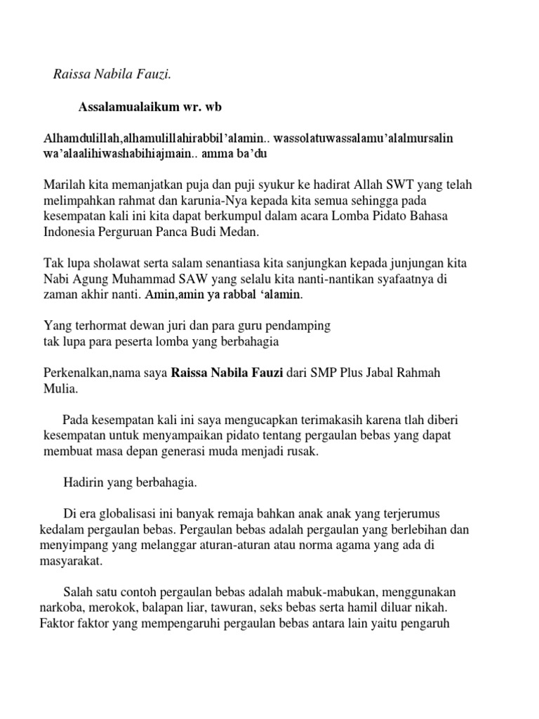 Doc Contoh Naskah Pidato Tentang Globalisasi Wahyu Widodo Academia Edu