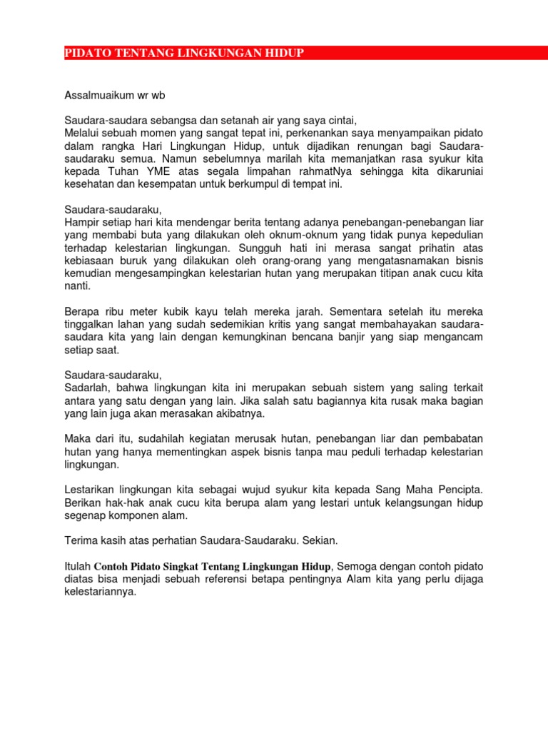 Contoh Naskah Pidato Tema Menjaga Lingkungan Di Sekolah Pdf