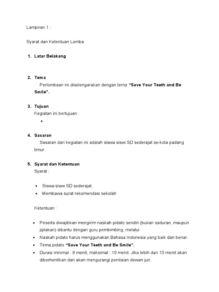 Syarat Dan Ketentuan Lomba Pidato Sd Pdf