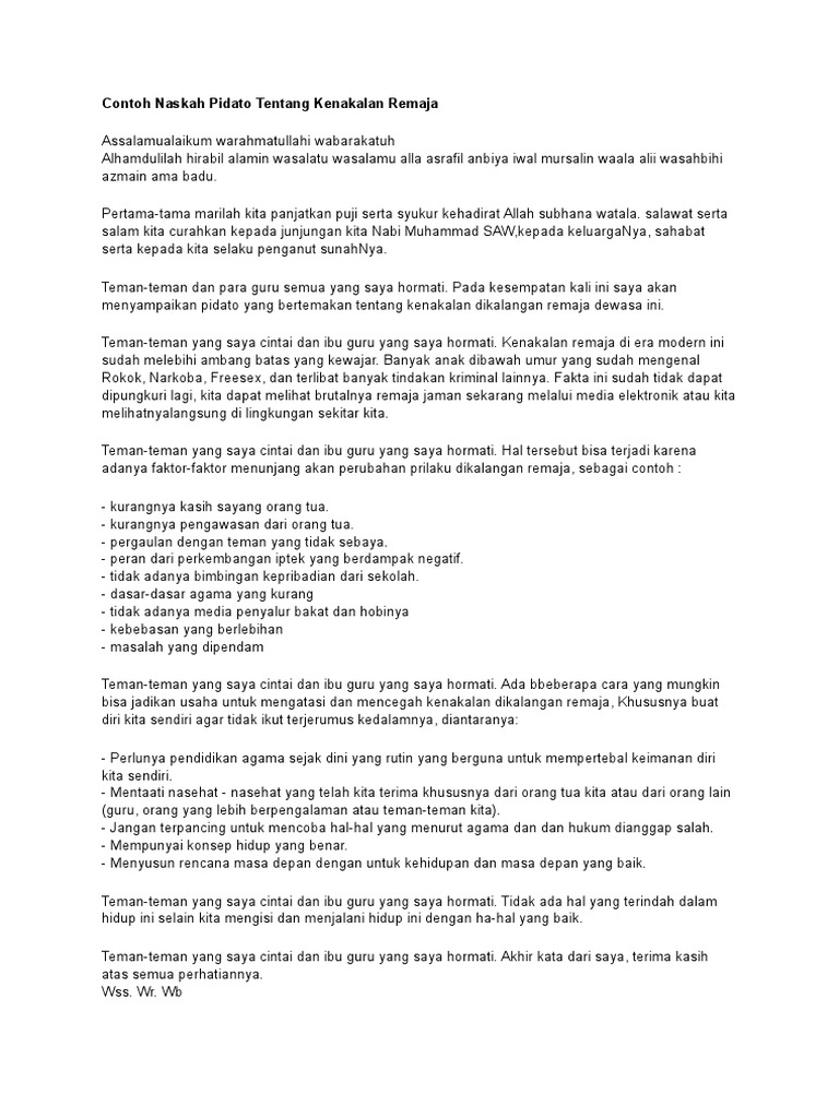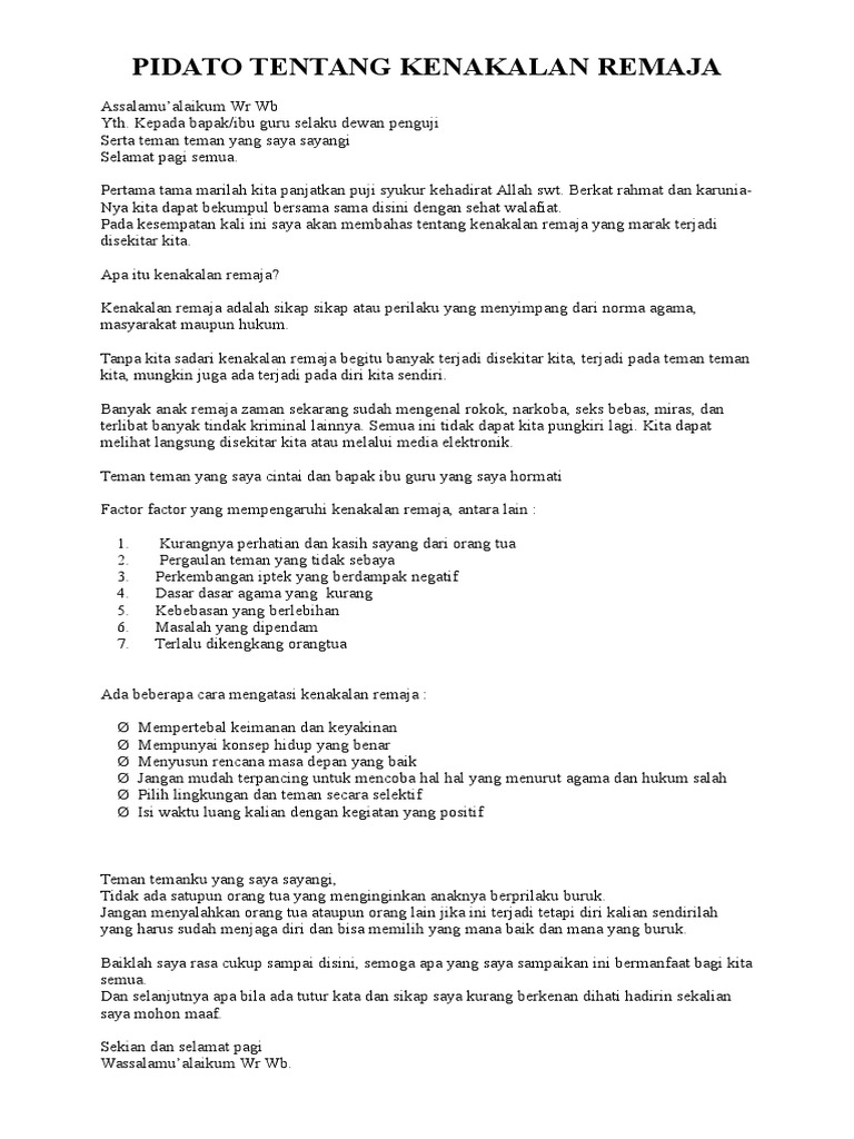 Contoh Pidato Kenakalan Remaja Ika Ramound Academia Edu